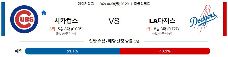 [킹콩티비] 컵스 다저스 분석 4월8일 MLB 스포츠중계