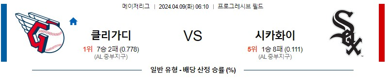 [킹콩티비] 클리블랜드 화이트삭스 분석 4월9일 MLB 스포츠중계