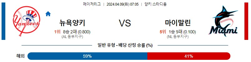 [킹콩티비] 양키스 마이애미 분석 4월9일 MLB 스포츠중계