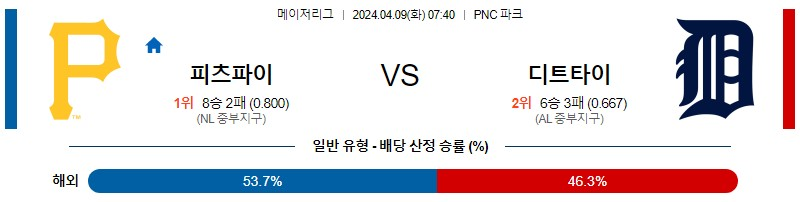 [킹콩티비] 피츠버그 디트로이트 분석 4월9일 MLB 스포츠중계