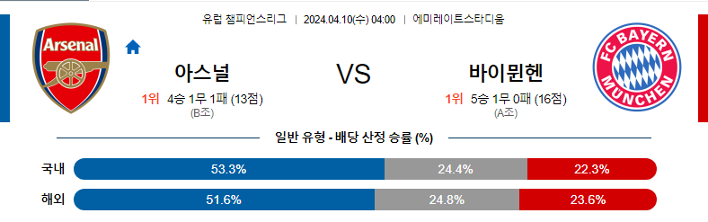 [킹콩티비] 아스날 바이에른뮌헨 분석 4월10일 챔피언스리그 스포츠중계