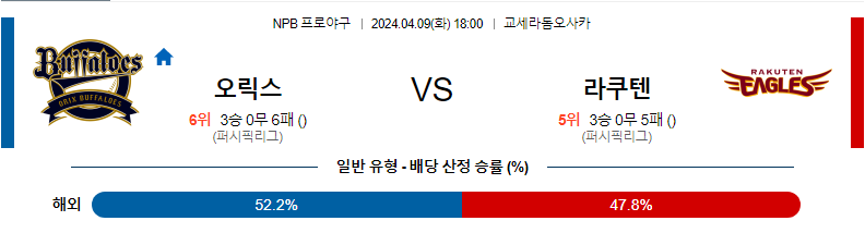 [킹콩티비] 04월 09일 오릭스 vs 라쿠텐 NPB 생중계, 스포츠분석,스포츠중계
