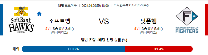 [킹콩티비] 04월 09일 소프트뱅크 vs 니혼햄 NPB 생중계, 스포츠분석,스포츠중계