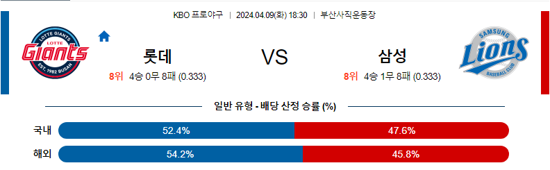 [킹콩티비] 04월 09일 롯데 vs 삼성 KBO 생중계, 스포츠분석,스포츠중계