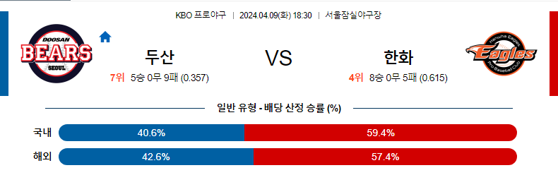 [킹콩티비] 04월 09일 두산 vs 한화 KBO 생중계, 스포츠분석,스포츠중계