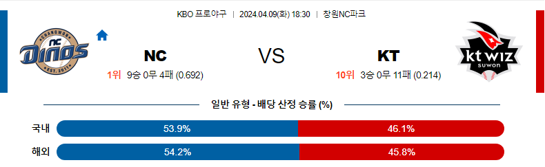 [킹콩티비] 04월 09일 NC vs KT KBO 생중계, 스포츠분석,스포츠중계