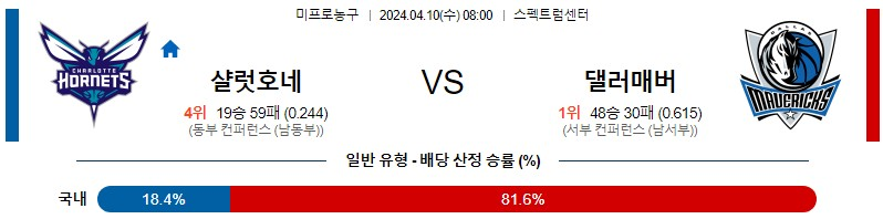 [킹콩티비] 04월 10일 샬럿 vs 댈러스 NBA 생중계, 스포츠분석,스포츠중계