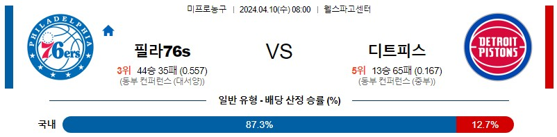 [킹콩티비] 04월 10일 필라델피아 vs 디트로이트 NBA 생중계, 스포츠분석,스포츠중계