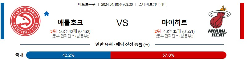 [킹콩티비] 04월 10일 애틀랜타 vs 마이애미 NBA 생중계, 스포츠분석,스포츠중계