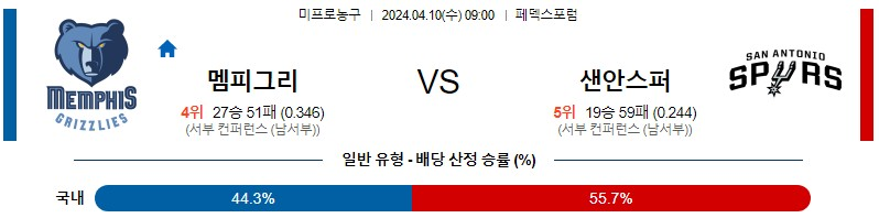 멤피스 샌안토니오 4월10일