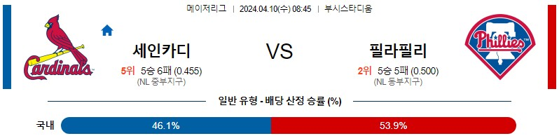 [킹콩티비] 04월 10일 세인트루이스 vs 필라델피아 MLB 생중계, 스포츠분석,스포츠중계