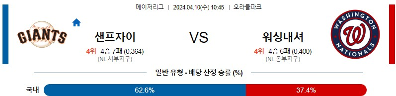 [킹콩티비] 04월 10일 샌프란시스코 vs 워싱턴 MLB 생중계, 스포츠분석,스포츠중계