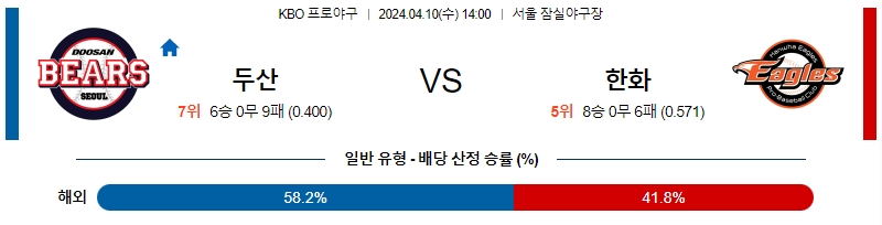 [킹콩티비] 04월 10일 두산 vs 한화 KBO 생중계, 스포츠분석,스포츠중계