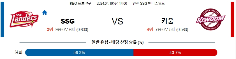 [킹콩티비] 04월 10일 SSG vs 키움 KBO 생중계, 스포츠분석,스포츠중계