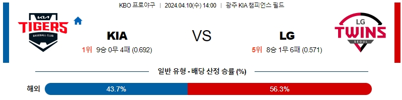 [킹콩티비] 04월 10일 기아 vs LG KBO 생중계, 스포츠분석,스포츠중계