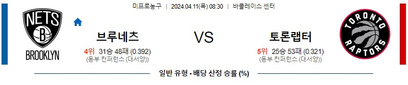 [킹콩티비] 04월 11일 브루클린 vs 토론토 NBA 생중계, 스포츠분석,스포츠중계
