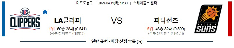 [킹콩티비] 04월 11일 클리퍼스 vs 피닉스 NBA 생중계, 스포츠분석,스포츠중계