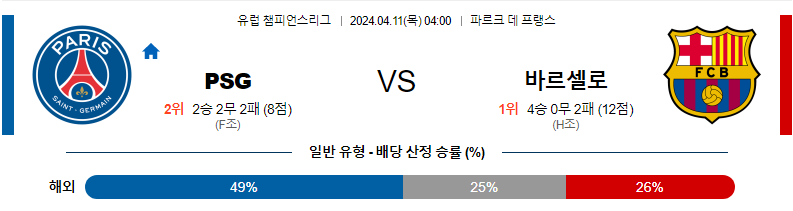 [킹콩티비] 04월 11일 파리생제르맹 vs 바르셀로나 챔피언스리그 생중계, 스포츠분석,스포츠중계
