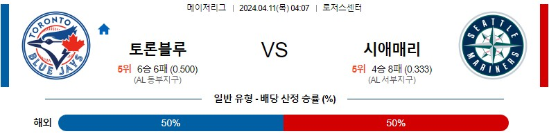 [킹콩티비] 04월 11일 토론토 vs 시애틀 MLB 생중계, 스포츠분석,스포츠중계