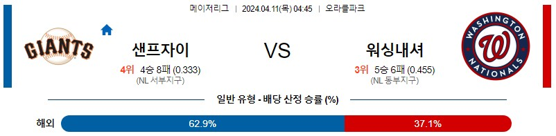 [킹콩티비] 04월 11일 샌프란시스코 vs 워싱턴 MLB 생중계, 스포츠분석,스포츠중계
