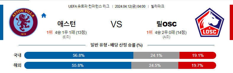 [킹콩티비] 04월 12일 애스턴빌라 vs 릴 유로파컨퍼런스 생중계, 스포츠분석,스포츠중계