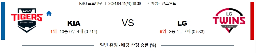 [킹콩티비] 04월 11일 KIA vs LG KBO 생중계, 스포츠분석,스포츠중계