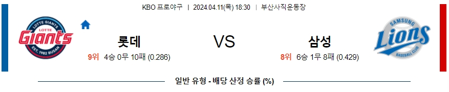 [킹콩티비] 04월 11일 롯데 vs 삼성 KBO 생중계, 스포츠분석,스포츠중계