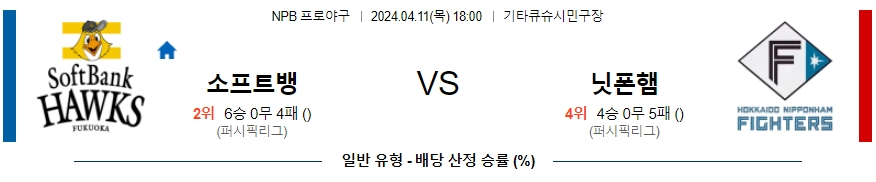[킹콩티비] 04월 11일 소프트뱅크 vs 니혼햄 NPB 생중계, 스포츠분석,스포츠중계