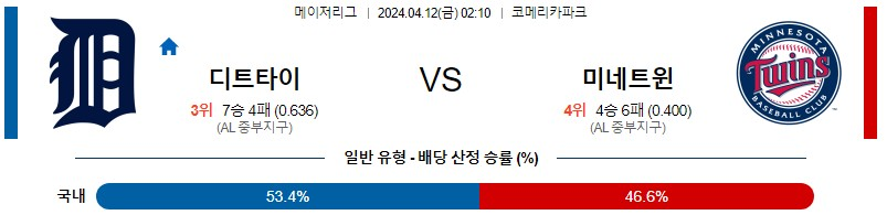 [킹콩티비] 04월 12일 디트로이트 vs 미네소타 MLB 생중계, 스포츠분석,스포츠중계