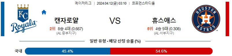 [킹콩티비] 04월 12일 캔자스시티 vs 휴스턴 MLB 생중계, 스포츠분석,스포츠중계