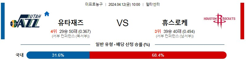 [킹콩티비] 04월 12일 유타 vs 휴스턴 NBA 생중계, 스포츠분석,스포츠중계