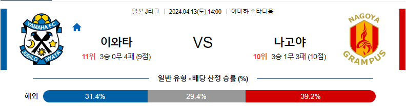 [킹콩티비] 04월 13일 주빌로이와타 vs 나고야 J리그 생중계, 스포츠분석,스포츠중계