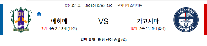 [킹콩티비] 04월 13일 에히메 vs 가고시마 J2리그 생중계, 스포츠분석,스포츠중계
