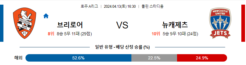 [킹콩티비] 04월 13일 브리즈번 vs 뉴캐슬제츠 A리그 생중계, 스포츠분석,스포츠중계