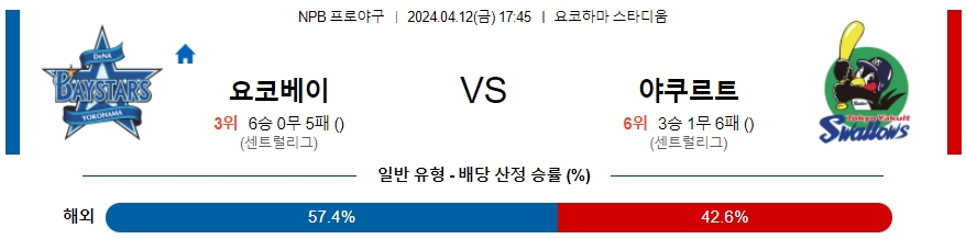 [킹콩티비] 04월 12일 요코하마 vs 야쿠르트 NPB 생중계, 스포츠분석,스포츠중계
