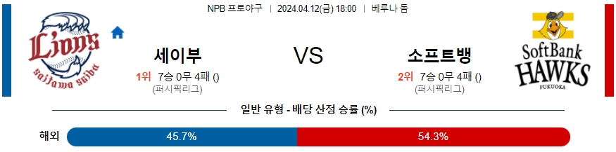 [킹콩티비] 04월 12일 세이부 vs 소프트뱅크 NPB 생중계, 스포츠분석,스포츠중계