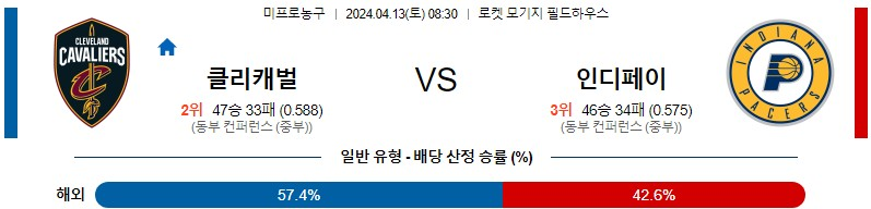 클리블랜드가 미세하게나마 유리한 경기. 동기부여도 아주 높을 수밖에 없다. 홈팀의 승리와 언더 추천.