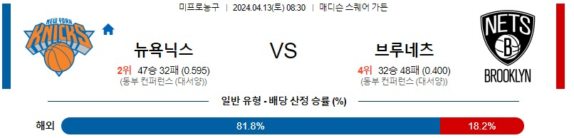 뉴욕은 매 경기가 플레이오프다. 뉴욕의 완승과 언더를 예상한다.