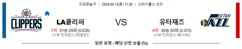 [킹콩티비] 04월 13일 클리퍼스 vs 유타 NBA 생중계, 스포츠분석,스포츠중계