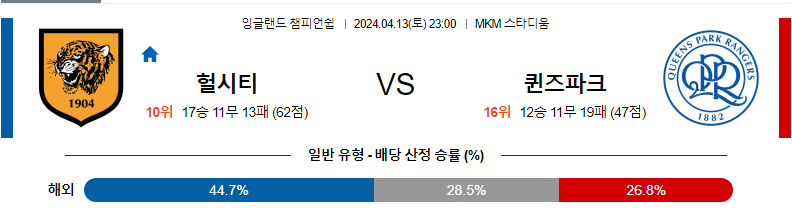 [킹콩티비] 04월 13일 헐시티 vs 퀸즈파크레인저스 챔피언쉽 생중계, 스포츠분석,스포츠중계