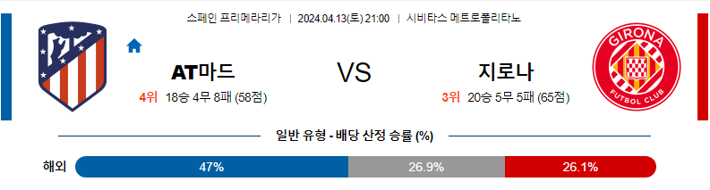 [킹콩티비] 04월 13일 AT마드리드 vs 지로나 라리가 생중계, 스포츠분석,스포츠중계