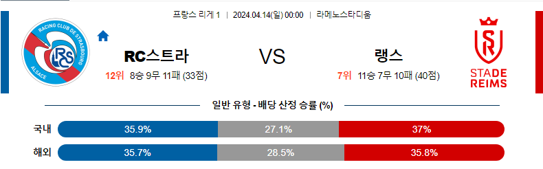 [킹콩티비] 04월 14일 스트라스부르 vs 랭스 리그1 생중계, 스포츠분석,스포츠중계