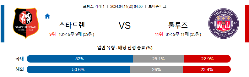 [킹콩티비] 04월 14일 렌 vs 툴루즈 리그1 생중계, 스포츠분석,스포츠중계
