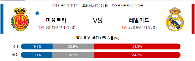 [킹콩티비] 04월 14일 마요르카 vs 레알마드리드 라리가 생중계, 스포츠분석,스포츠중계