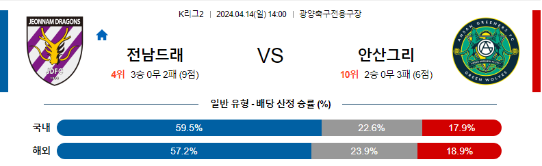 [킹콩티비] 04월 14일 전남 vs 안산 K리그2 생중계, 스포츠분석,스포츠중계