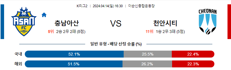 [킹콩티비] 04월 14일 충남아산 vs 천안 K리그2 생중계, 스포츠분석,스포츠중계