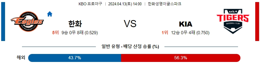[킹콩티비] 04월 13일 한화 vs 기아 KBO 생중계, 스포츠분석,스포츠중계