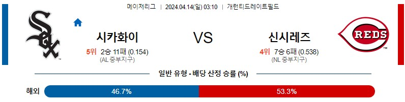 [킹콩티비] 04월 14일 화이트삭스 vs 신시내티 MLB 생중계, 스포츠분석,스포츠중계