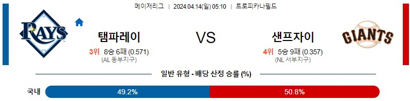 [킹콩티비] 04월 14일 템파베이 vs 샌프란시스코 MLB 생중계, 스포츠분석,스포츠중계