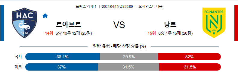 [킹콩티비] 04월 14일 르아브르 vs 낭트 리그1 생중계, 스포츠분석,스포츠중계